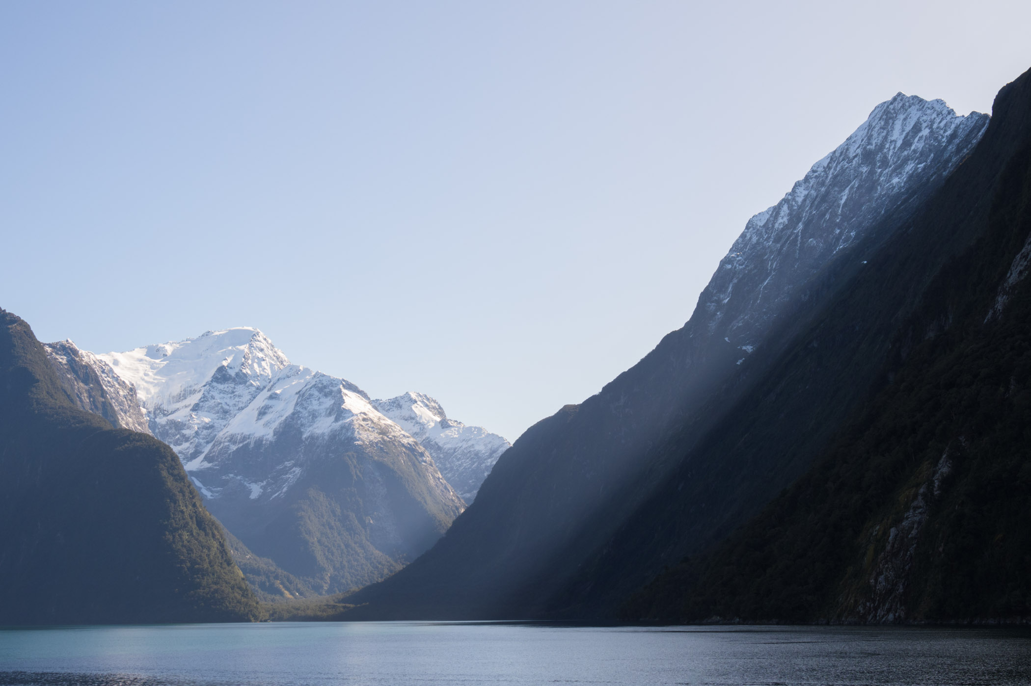 Also from New Zealand: Milford Sound is one of the most stunning places in the world, but on a sunny day it can be photographically overwhelming. Instead of attempting to create an image to show the whole place, I began to look for areas of uniformity. I noticed a consistent pattern of the ripples in front of me and zoomed in to capture just that and nothing else.