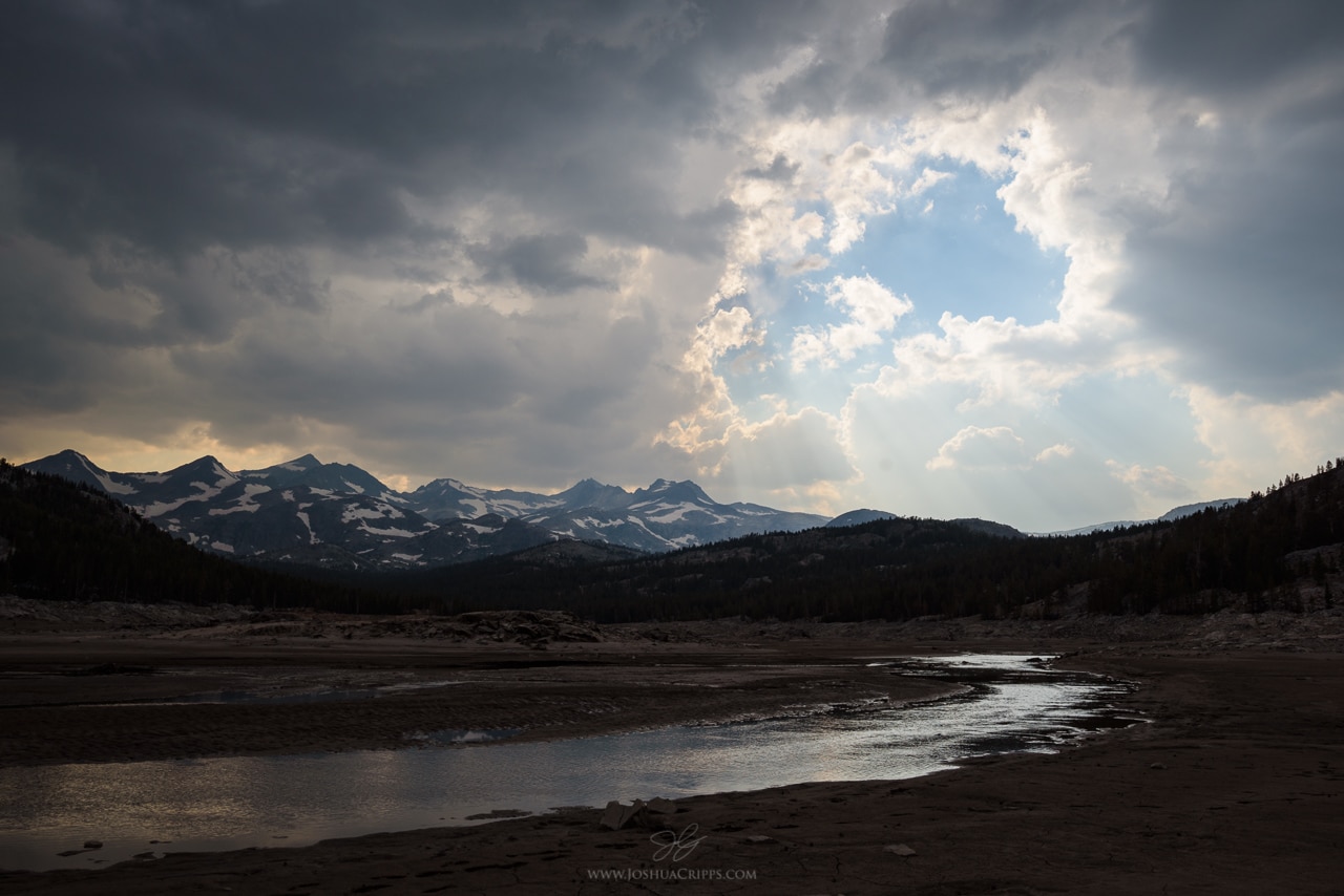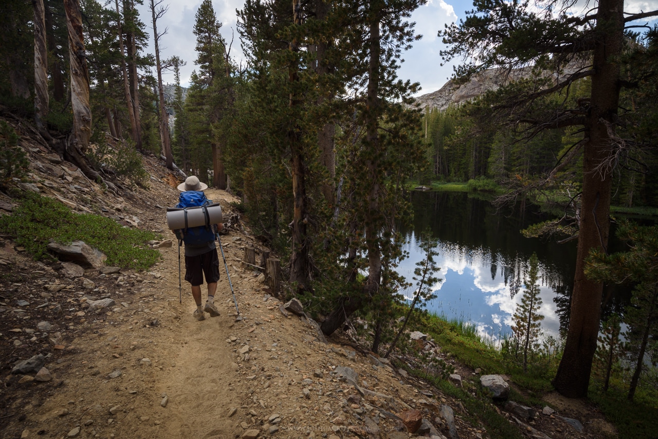The first part of the trail was pretty, if not exactly spectacular by Sierra standards. Lots of exposed rocky slopes falling off into the three reservoirs: Agnew lake, Gem lake, and Waugh Lake. Afternoon thunderstorms were building as well, giving some cloudy relief to the direct sunlight. It was nice, but the trail was incredibly loose and dusty and I found myself frequently parched. I was really looking forward to getting up into the Alpine zone, where we’d be among the pine trees and rushing creeks.