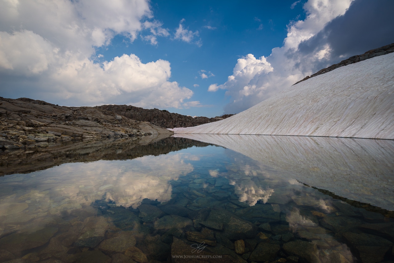 And while the tarn was eye-catching from afar, it was absolutely breathtaking from up close. The mirror-smooth surface reflected the billowing clouds in the sky, while the clarity of the water allowed the rocks beneath the surface to shine through.