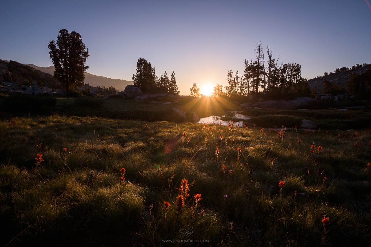 The next day, our final day, dawned once again clear and cloudless. And though I wasn’t excited about the possibility of photographing grand landscapes in those conditions I was really keen to get some shots of the innumerable paintbrush that littered the valley floor. I wriggled out of my warm sleeping bag, grabbed my camera, and head up the valley to some of the densest patches of flowers. As the sun came up over the horizon it lit up the heads up the paintbrush with intense oranges and reds. And I had a very enjoyable morning shooting intimates, a kind of photography a rarely indulge in, although I love it.