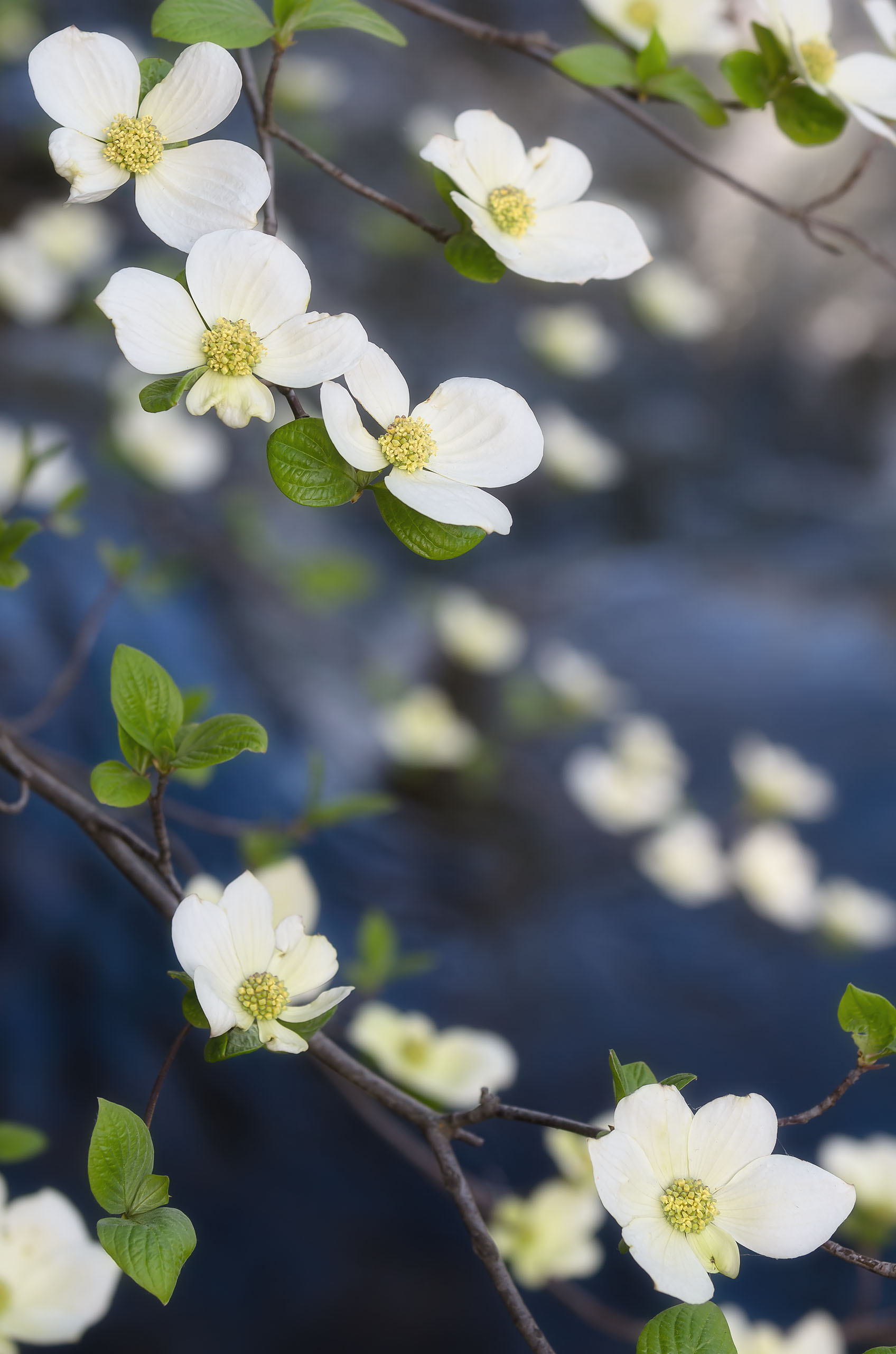 Photographing wildflowers always requires planning, anticipation, and a healthy dose of luck. I’ve studied spring flower blooms for many years and know that although there is a typical window in which they appear, you must be ready to leap into action at a moment’s notice if you want to catch the peak of the season. In early 2013 I was living just outside of Yosemite National Park, and I had my flower radar turned up to maximum. Near the end of April, that radar went off with a bang, and I drove to Yosemite seeking flowers. Despite following one of the driest winters on record for the Sierra, that spring came to Yosemite Valley in full force. As usual the waterfalls were spouting like colossal fountains, but even more spectacular were the Yosemite dogwoods, which were blooming profusely throughout the Valley. I’ve never seen such abundance and incredible vibrancy in the blooms. The entire Merced River was surrounded by endless expanses of the white bracts, and I was overjoyed by the sheer magnitud e of this new life. From a photography standpoint there were almost too many blooms, as it was challenging to find a composition that wasn’t overly busy. After searching all along the river I finally came to the Pohono Bridge. Climbing onto the stone walls of the bridge I spotted this delicate arrangement of blooms, their diagonal flow creating a beautiful series of layers above the deep blue waters of the Merced River. I held my camera steady, waited for a lull in the breeze, and snapped this shot.