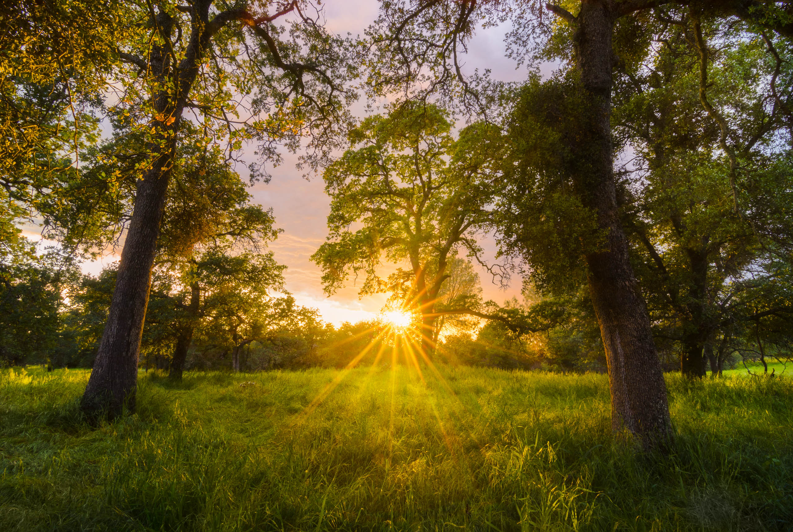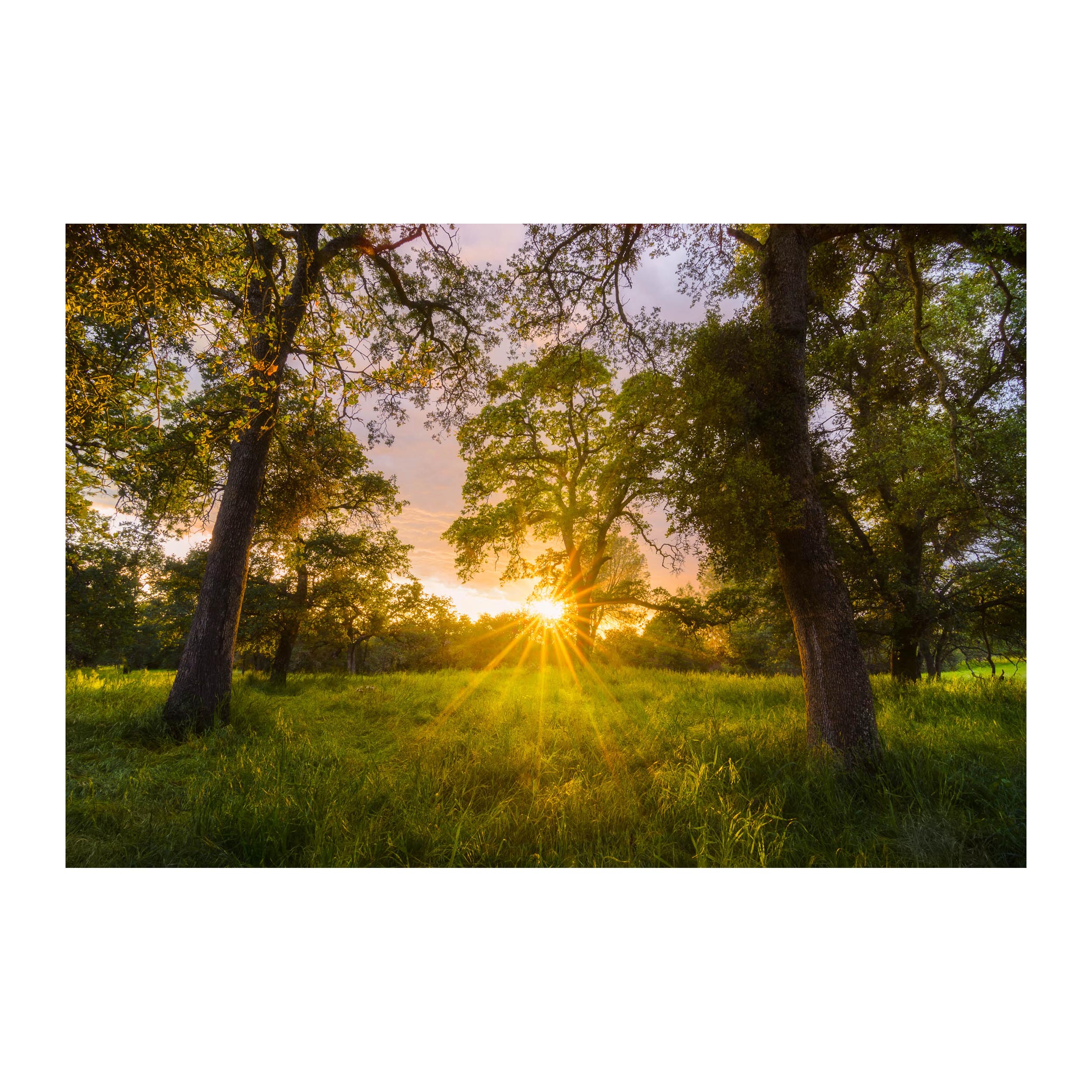 On this beautiful spring evening I was strolling through the oak savanna on the west side of the Sierra. I wandered into a grove of stately oak trees and was blown away by their perfect organic shapes. I felt all of my senses come to life: my eyes were drawn in by the vivid green of the grass and leaves, along with the strong graphical shapes of the trunks. A soft breeze whispered through the air, bringing a fresh spring scent and lovely susurration to the evening. I could feel the grasses dancing against my legs.