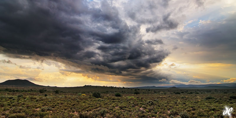 Possibly my favorite thing about this sunset is that it was completely unexpected. I was driving through South Africa in August 2008 with my girlfriend at the time and we were winding through a mountain pass on our way from the Little Karoo to the Great Karoo. I don’t remember the skies over the mountains being particularly interesting but as we came down from the pass we rounded a hill and saw this massive UFO of a cloud shooting god rays out into the land. I don’t know if I’ve ever slammed on the brakes so fast for something that wasn’t an animal in the road. The dark-as-night cumulus clouds, the fiery beams of light, and the blue sky peeking through behind. I was all just seriously redonk, and it probably remains the overall bad-assest light show I’ve ever seen.